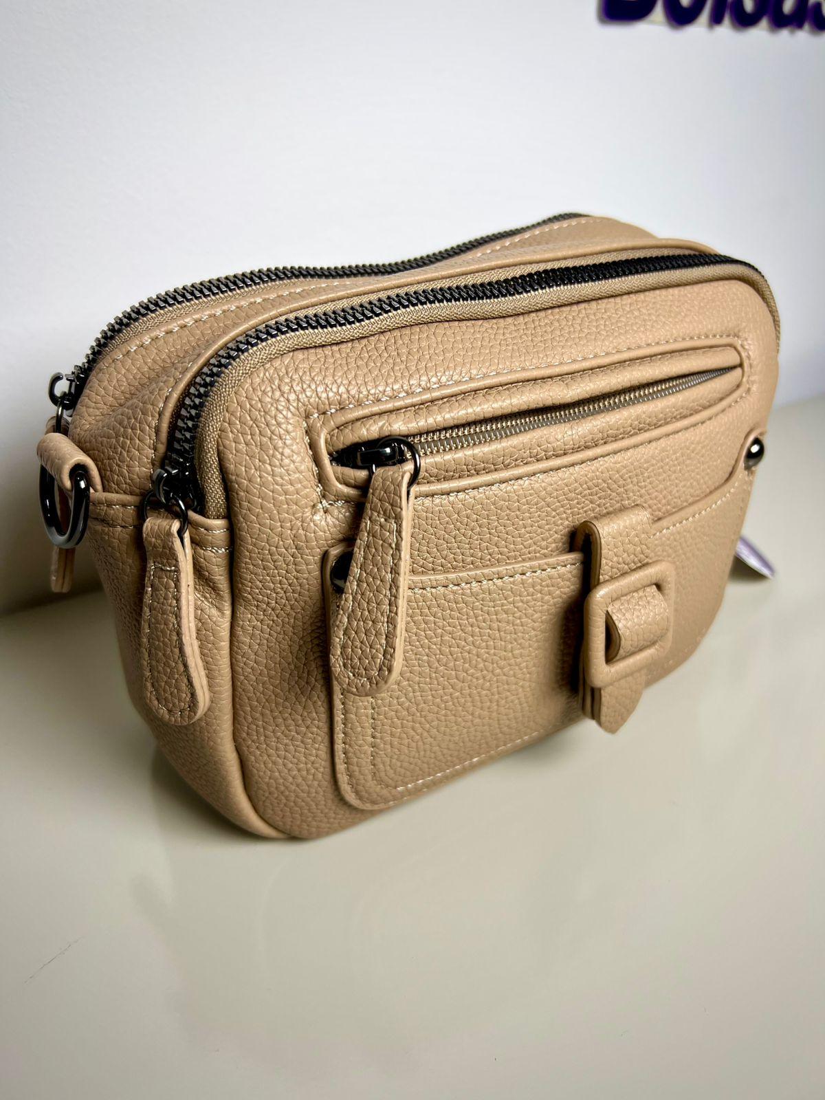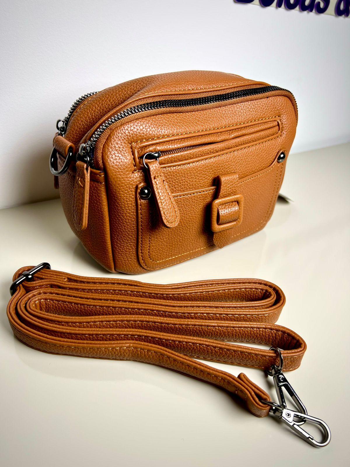 Modelo transversal com ótimo espaço interno, bolso frontal funcional e fechamento em zíper. Ideal para o dia a dia, passeios e viagens.