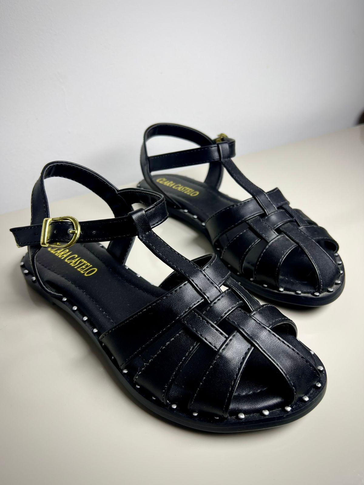 Sandália boneca Clara Castelo na cor preta, com tiras delicadas e fechamento ajustável, perfeita para unir conforto e estilo no dia a dia.